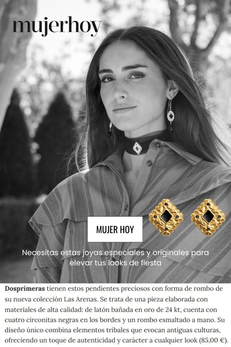 LEERPendientes Rombos de Arena: pieza elaborada con materiales de alta calidad, que cuenta con cuatro circonitas negras y un rombo esmaltado a mano.