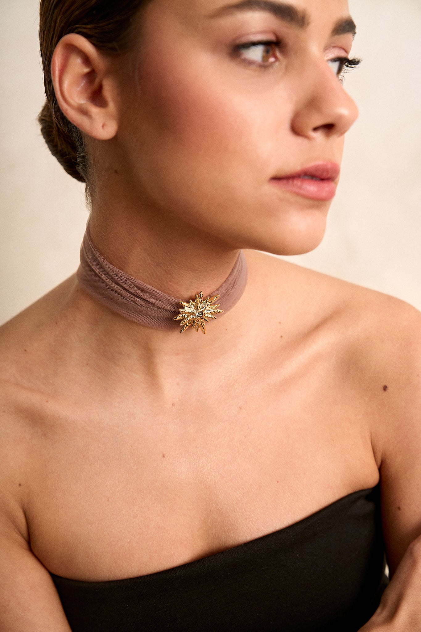 La idea de este choker es que cada uno lo luzca a su estilo, por lo que puedes elegir hasta dos broches.