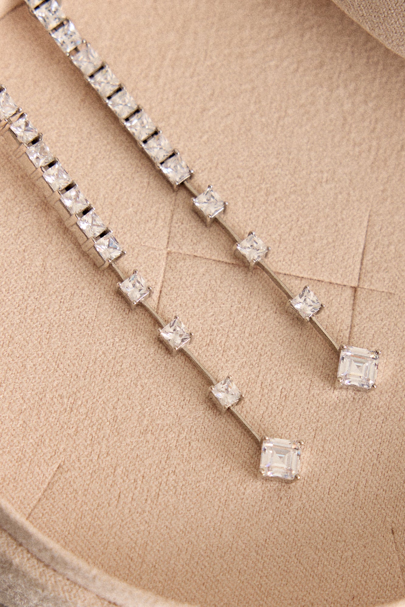 Pendientes de Plata de Ley 925 con circonitas carré en garra color cristal unidas entre sí.